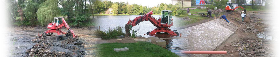 Baggerungen in Größenordnungen von 100 m³ bis z. B. 20.000 m³ sind auch mittels schwimmender Technik als Nassbaggerung in Binnengewässern aller Art oder auch schiffbaren Wasserläufen möglich. Eine entsprechende Transporttechnik steht zur Verfügung. Das Entschlammen oder Entkiesen von Gewässern ist mittels Saugbagger- oder Pumptechnik in verschiedenen Größenordnungen ausführbar.